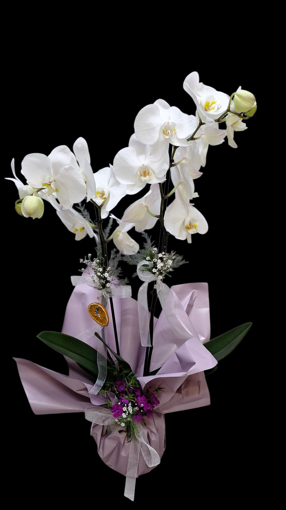 Zarif ve gösterişli 2 dallı beyaz orkide uzun süre yaşam alanlarına canlılık katacaktır. En güzel ve sadeliğin temsilcisi orkide modelini sevdiklerinize her türlü özel günde, tebrik, teşekkür, geçmiş olsun, doğum günü için gönderebilirsiniz. Yükseklik: 60-65 cm