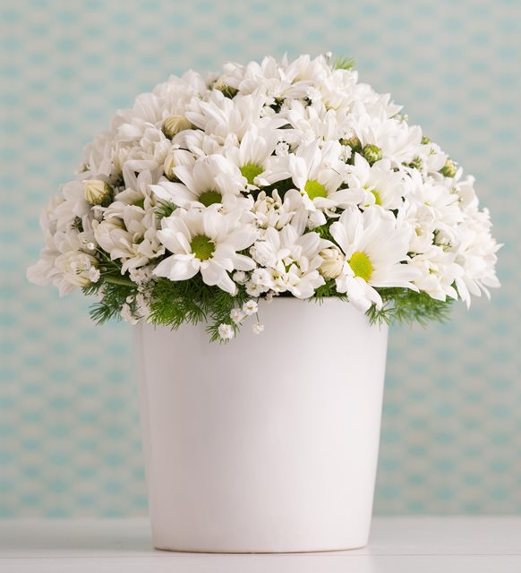 Seramik Vazoda Beyaz Papatyalar